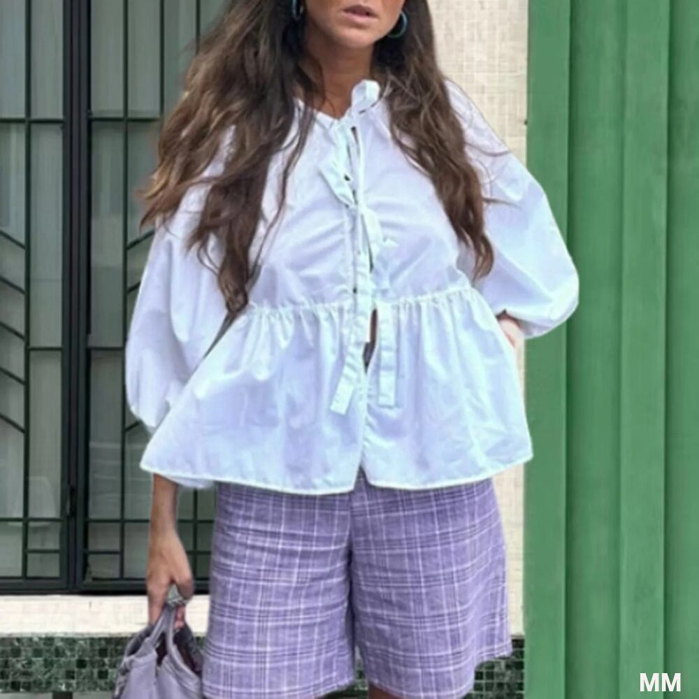 女性用プリントバブルブラウス,半袖,フロントネクタイ,裾,ルーズフィット,ストライプ,新しい春夏コレクション2024 Tシャツ シャツ T240619141353_04