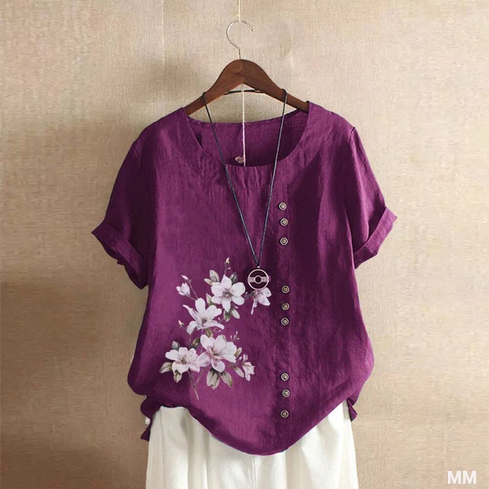 女性のための花柄のコットンとリネンのブラウス,半袖,レトロなスタイル,ヴィンテージスタイル,十分な,夏のトップス,WYLP M03 BHH Tシャツ シャツ T240619141517_05