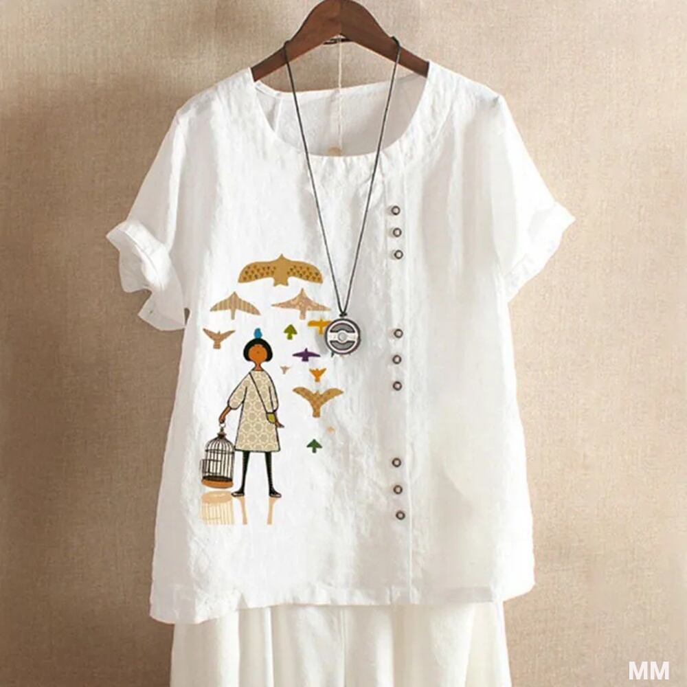 女性のレトロなヴィンテージフローラルプリントのブラウス,特大のシャツ,ラウンドネック,半袖,カジュアルなコットンとリネンのトップス,夏,S 5XL Tシャツ シャツ T240619141556_11