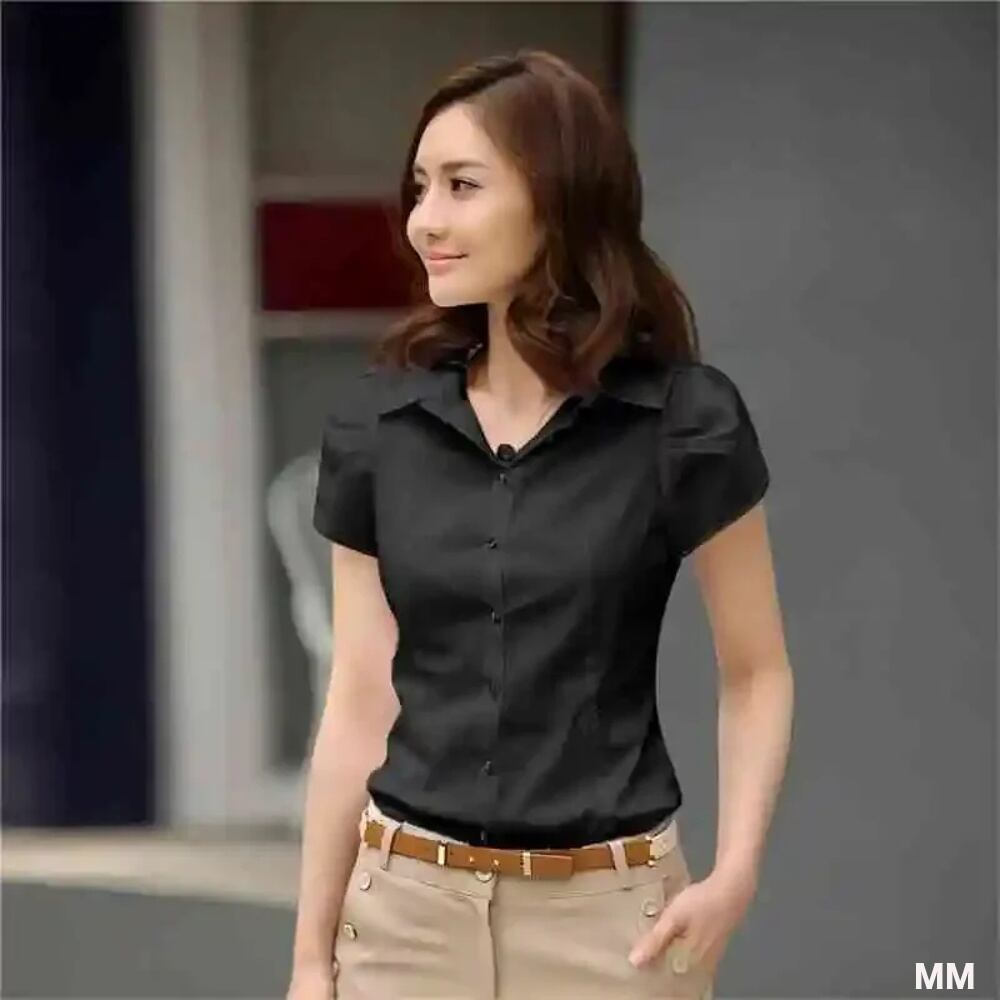 女性用半袖シャツ,仕事用ブラウス,黒と白のブラウス,ワークウェア,夏,ol,2022|シャツ| Tシャツ シャツ T240619141627_02