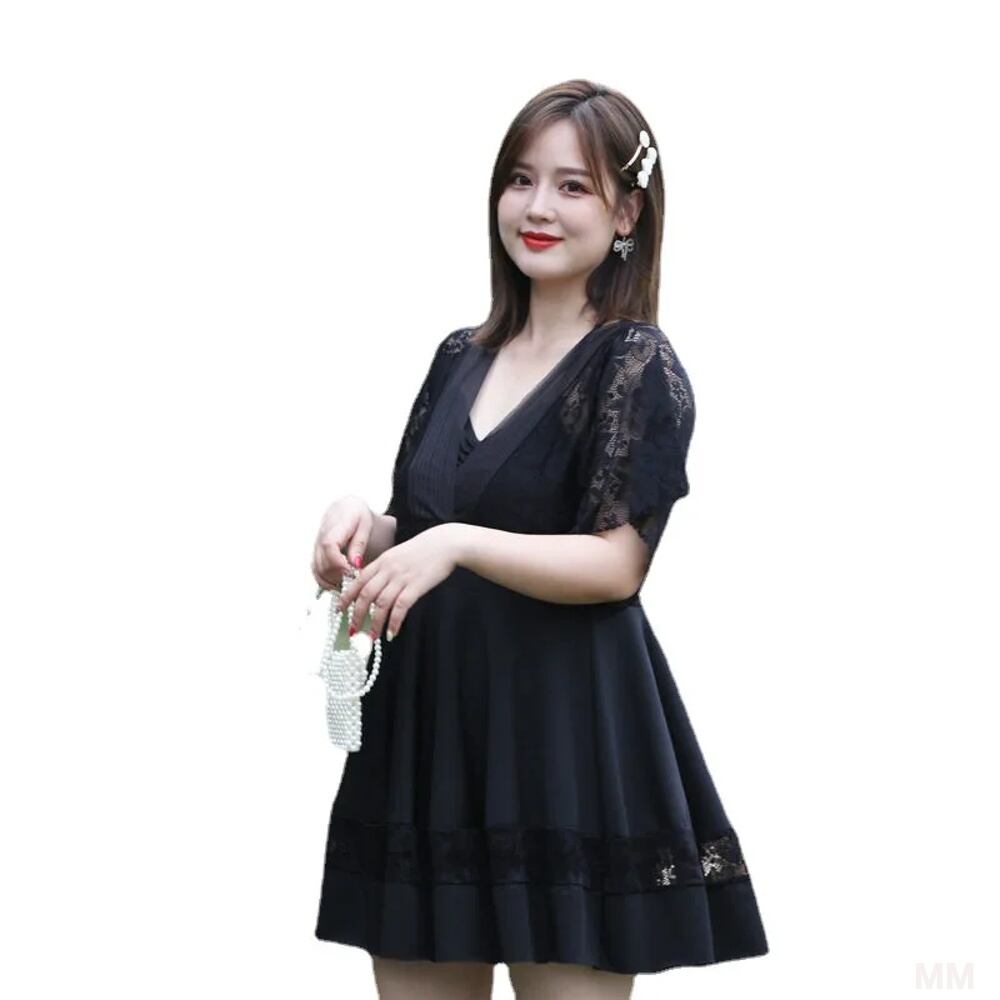 黒のVネック水着,韓国風の女性用ビキニ,通気性のあるレースのスカートとホルターネック,ワンサイズですべてにフィット 韓国系水着 セパレート水着 ワンピース水着 T240626154648_01