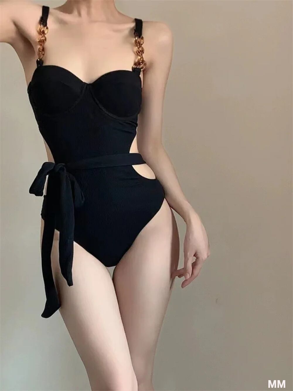 ワンピースの腕立て伏せ水着,セクシー,ブラック,ベージュ,ハイウエストのネクタイ付きビキニ,透かし彫り,パッド入り,水着,binit,韓国のファッション 韓国系水着 セパレート水着 ワンピース水着 T240626154723_01