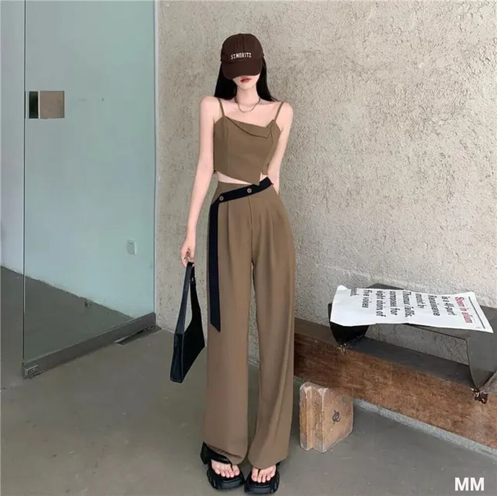 女性のためのエレガントなロングパンツとストラップレスドレス,ルーズフィット,ハイウエスト,カジュアル,春秋ファッション 韓国系水着 セパレート水着 ワンピース水着 T240626154818_01