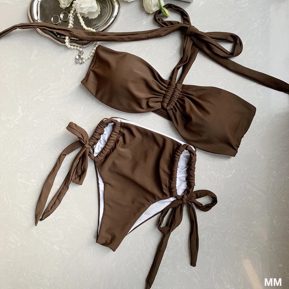 女性のためのセクシーなホルターバンデウビキニ,韓国のビーチウェア,茶色,2021 韓国系水着 セパレート水着 ワンピース水着 T240626154853_01