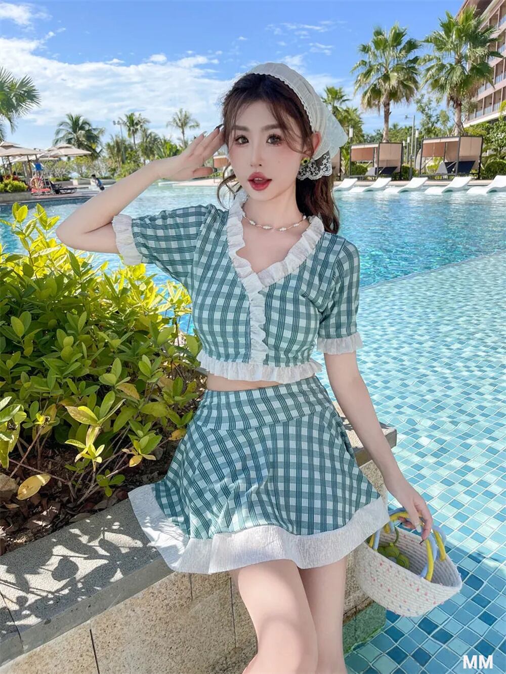 フリル付き半袖水着,パッド入りビキニ,ショートトップ,ツーピース,セクシー 韓国系水着 セパレート水着 ワンピース水着 T240626155052_02