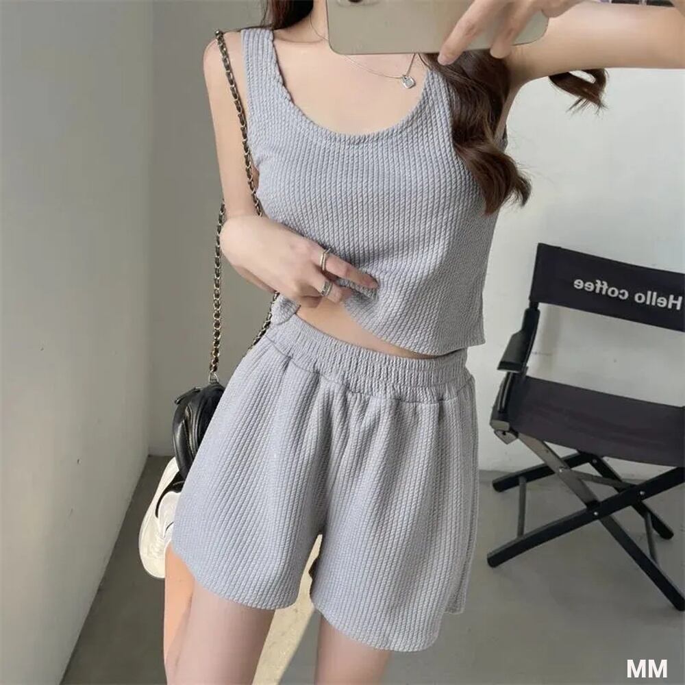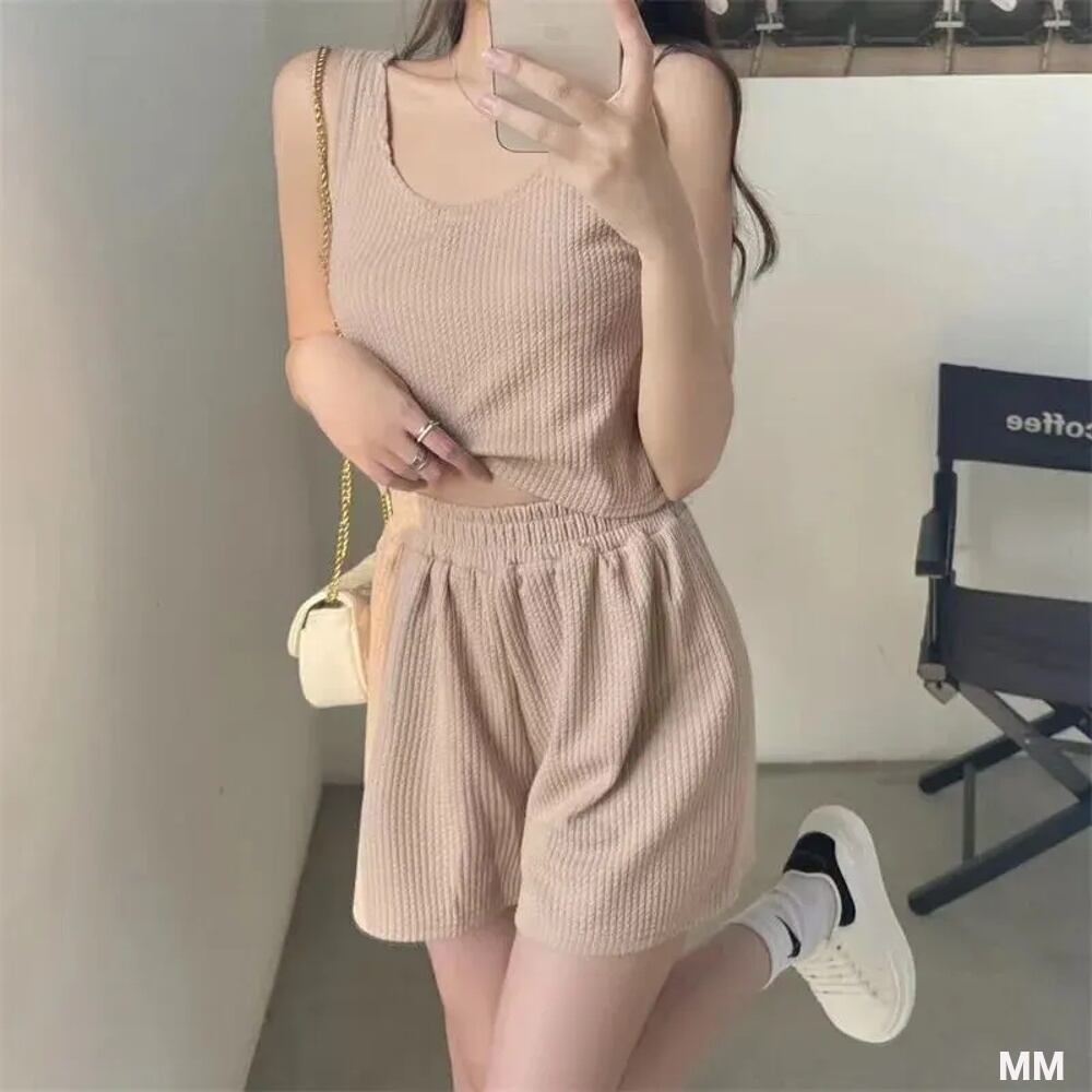 女性用ポリエステルバギーショーツ,快適なハイウエスト生地,カジュアル,韓国スタイル,夏のファッション,2個セット 韓国系水着 セパレート水着 ワンピース水着 T240626155240_01