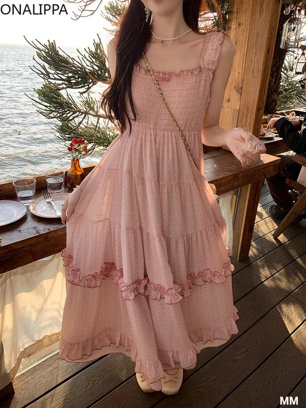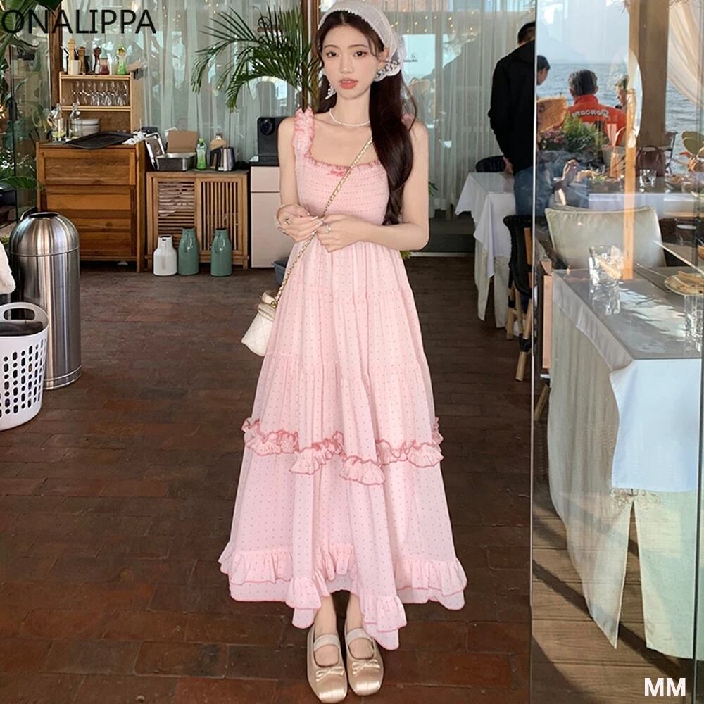 Onipippa甘い木の耳の点線女性のためのピンクのドレス、韓国のa lineドレス、ハイウエスト、すべてが一致、エラスティックチェスト 韓国系水着 セパレート水着 ワンピース水着 T240626155408_01