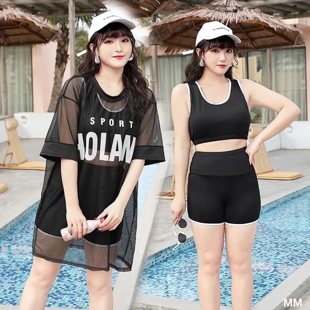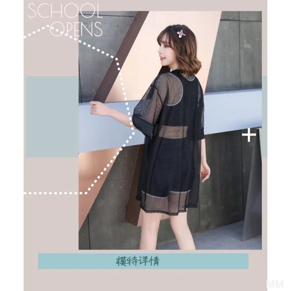 女性用3ピース水着,長袖トップスとシングルコリアンスタイルの水着,ハイウエスト,ブラック 韓国系水着 セパレート水着 ワンピース水着 T240626155734_01