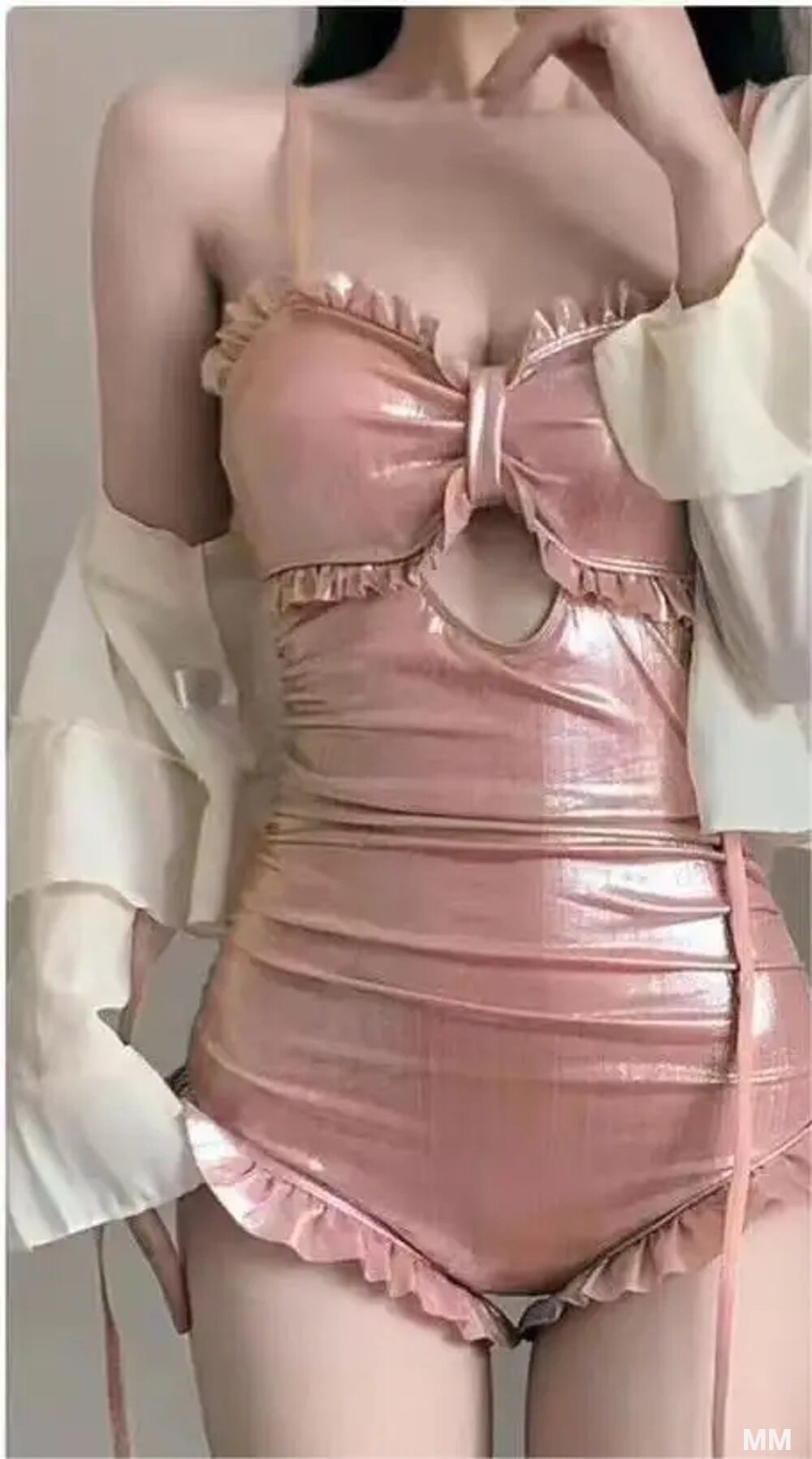 女性用ワンピースビーチ水着,フリル,スリム,ハイウエスト,光沢,きらめく,韓国スタイル,2022 韓国系水着 セパレート水着 ワンピース水着 T240626160018_01