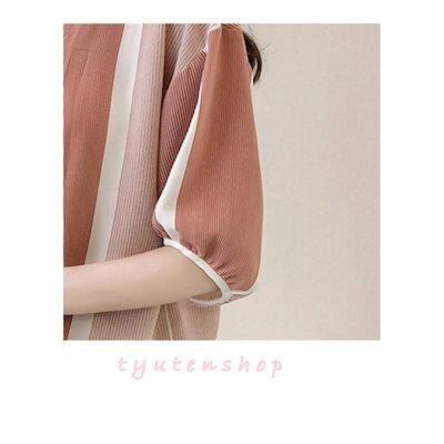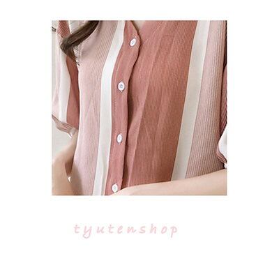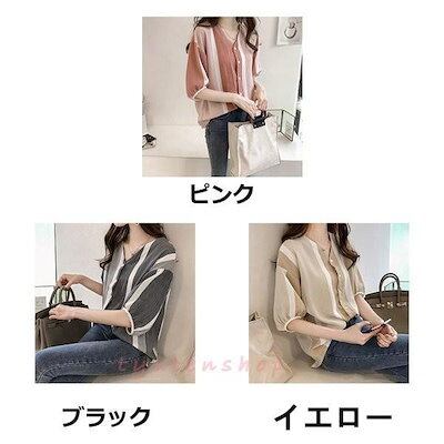 ブラウスレディース可愛い ブラウストップスストライプ柄ブラウス韓国風半袖ブラウス春夏リゾートシャツブラウス 通勤 人気 春夏20代30代40代