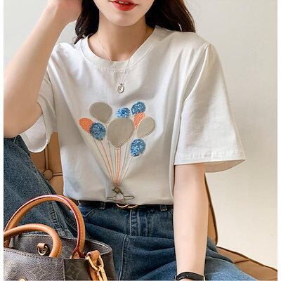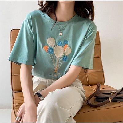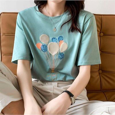 Tシャツ トップス レディース 綿 ラウンドカット 体型カバー オーバーサイズ 春 夏 半袖 スリム シンプル 可愛い 韓国 大人 通勤 通学 20代