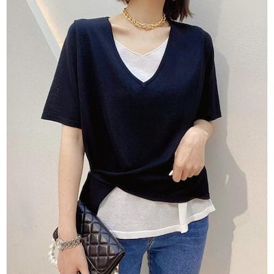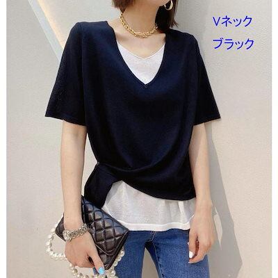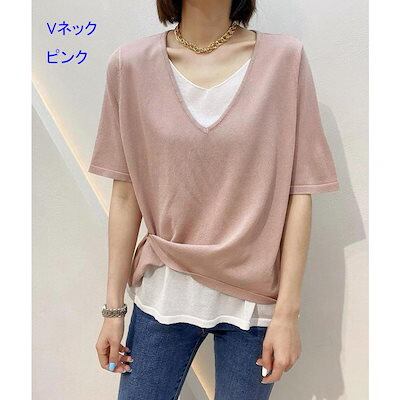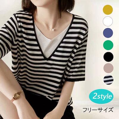 人気沸騰新柄追加 Tシャツ レディース 40代 ニット Vネック 春夏 韓国風 半袖 ボーダー柄 ニット 20代 30代 50代 トップス 大きいサイズ ゆったり 大人 おしゃれ 体型カバー