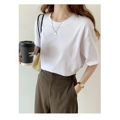 大人の魅力 Tシャツ レディース トップス 40代 半袖 綿 春夏 新作 カットソー 新作 大きいサイズ シンプル インナー UVカット 韓国風 20代 30代 40代 おしゃれ かわいい★3