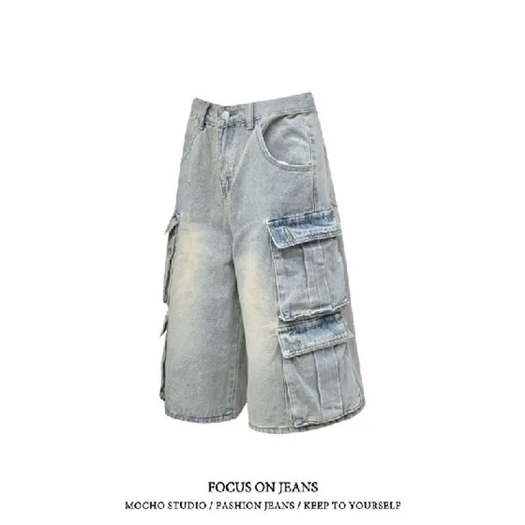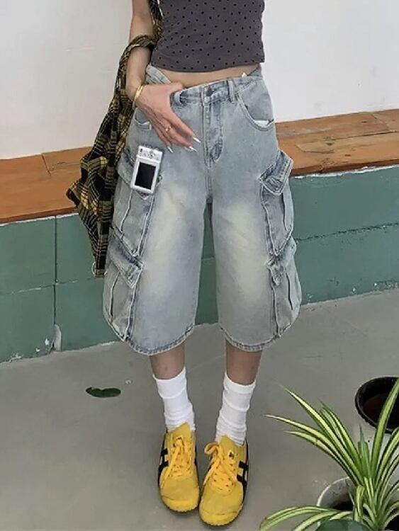 女性のためのヴィンテージハイストリートジーンズ,特大のウォッシュドジーンズ,さまざまなポケット,ワークウェア,y2kのハイウエスト,原宿ゆったりとしたドレープ,ワイドレッグショーツ