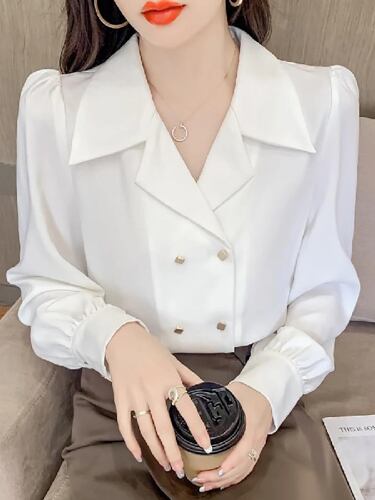 長袖Vネックシャツ,ヴィンテージ,ダブルブレスト,トップ,ボトム,カジュアル,単色,セクシー,エレガント,ファッショナブル,夏,2022