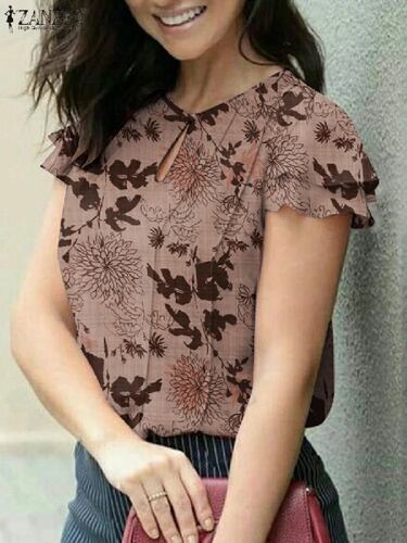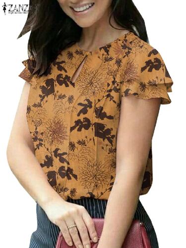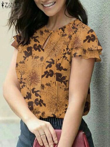 Zanzea-女性用カジュアルフローラルプリントブラウス、半袖、ラウンドネックチュニックトップス、レディースファッション、ホリデーシャツ、エレガント、サマー、2024