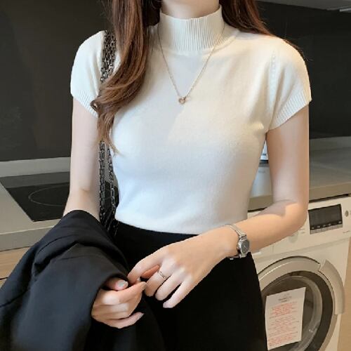 韓国-女性のためのニットタートルネックブラウス,カジュアルなトップス,単色の服,スリムなknitwear,春と夏のファッション,新しい8622,2024