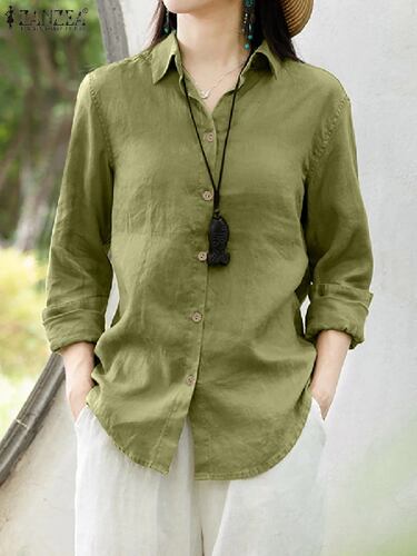Zanzea-ラペルカラーの女性用長袖ブラウス,単色,カジュアル,純綿,ファッショナブル,仕事,夏,2023