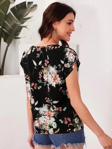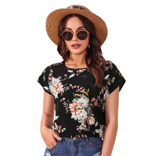女性の半袖フローラルプリントTシャツ,ラウンドネック,サマーファッション,カジュアルスタイル