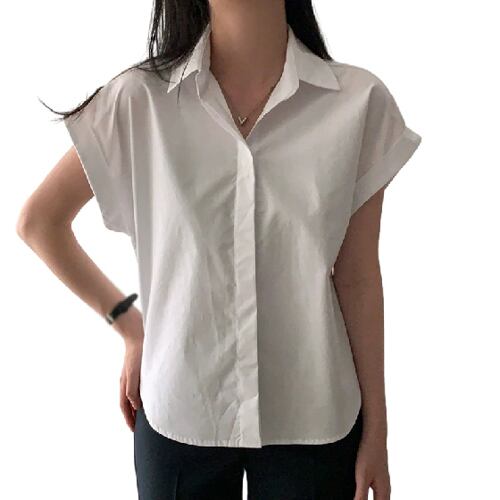 女性用半袖ルーズブラウス,夏,ラペル,ボタン付き,ミニマリスト