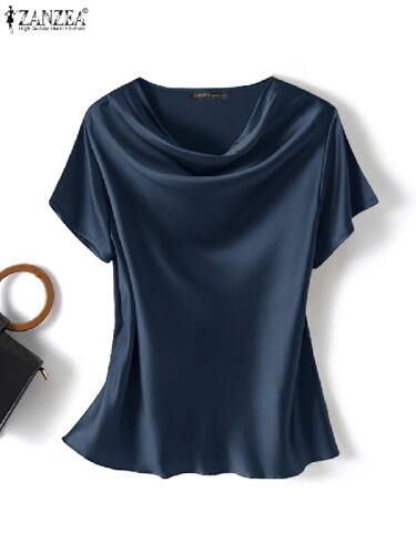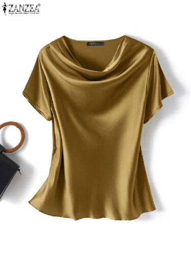 Zanzea-半袖の女性用サテンチュニック,ルーズフィット,無地,ファッショナブル,カジュアル,作業服