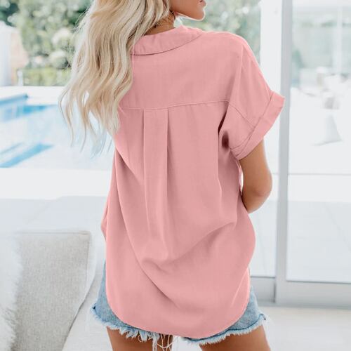女性用半袖ブラウス,ボタン付きブラウス,カジュアルトップ,ルーズラペル,無地コットンシャツ,オフィスファッション,夏