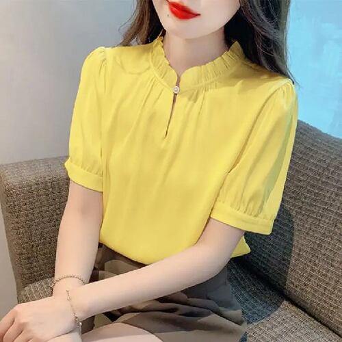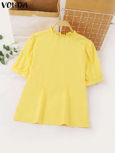 Vonda-女性用半袖ふくらんでいるシャツ,スタンドカラー,ルーズフィット,カジュアル,エレガント,オフィス,サマーファッション,2024