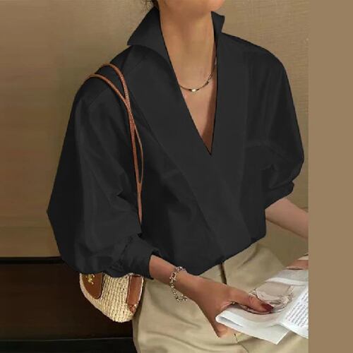 Zanzea-パフスリーブのチュニックトップ,プランジングVネック,女性用,シックなシャツ,セクシーな白いブラウス,オフィスファッション,春のラペル,2022