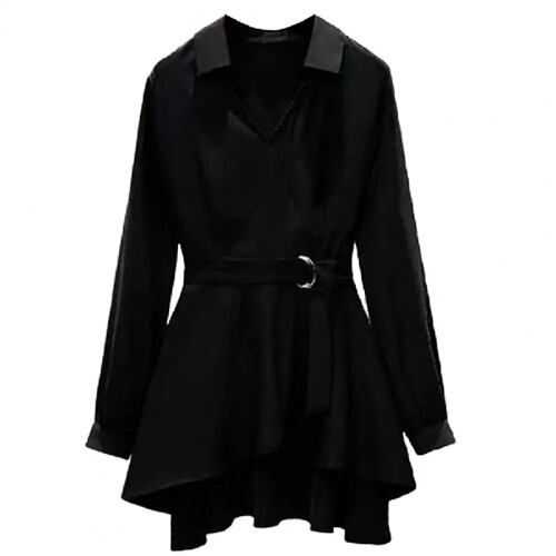 女性用長袖シャツ,ラペルVネックブラウス,不規則な裾,タイトなウエスト,調節可能なベルト,プルオーバー,トップス