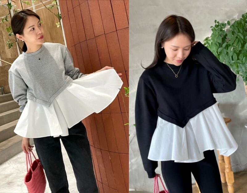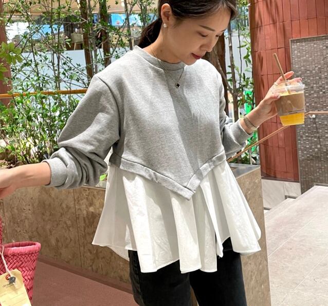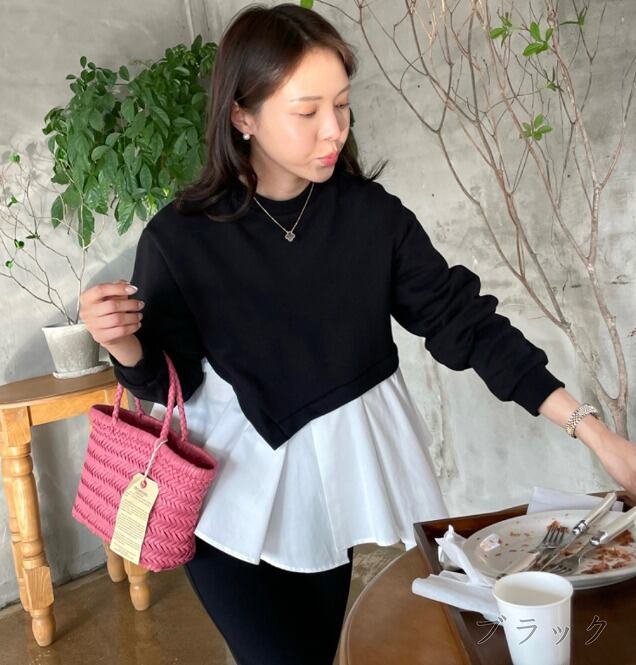 全2色 スウェット トレーナー フリル 切り替え バイカラー 体型カバー 着痩せ カジュアル