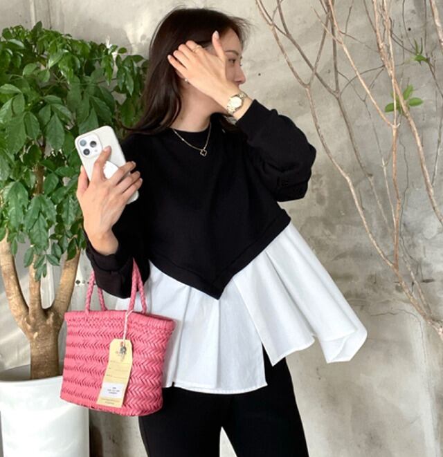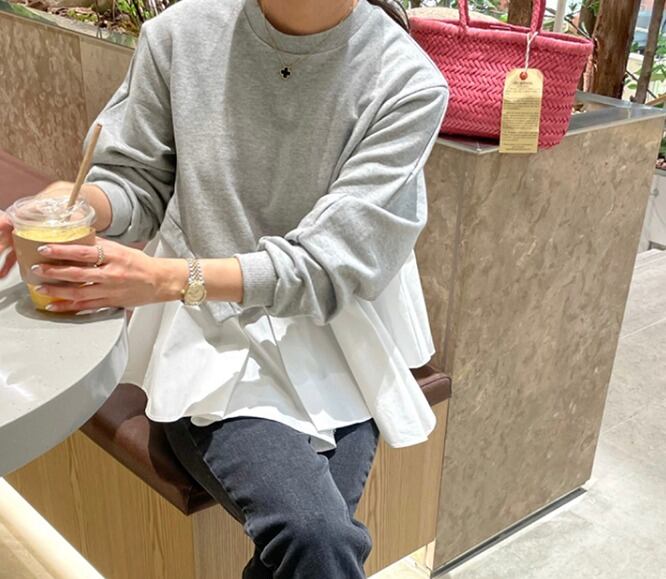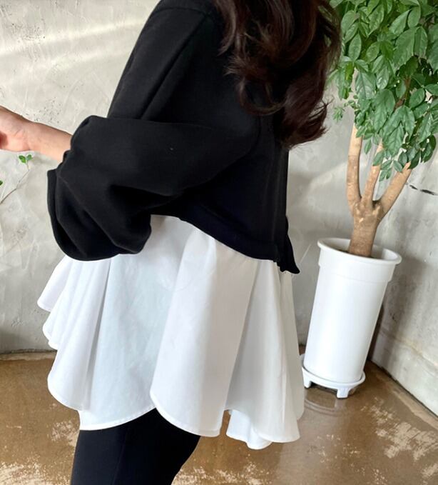 全2色 スウェット トレーナー アシンメトリー フリル 切り替え 体型カバー 着痩せ カジュアル
