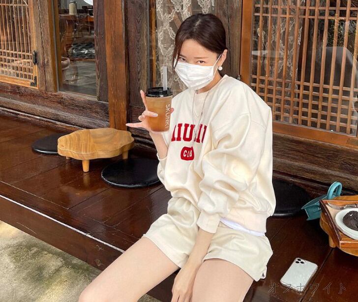 全3色 スウェット トレーナー 長袖 切り替え 体型カバー 着痩せ LOGO ロゴ 英字 シンプル カジュアル