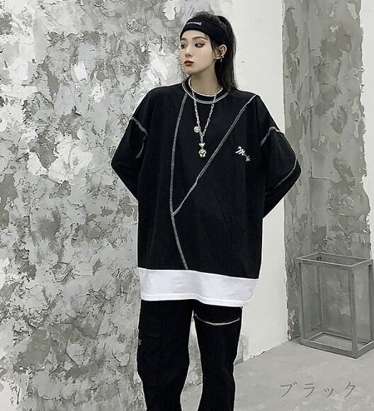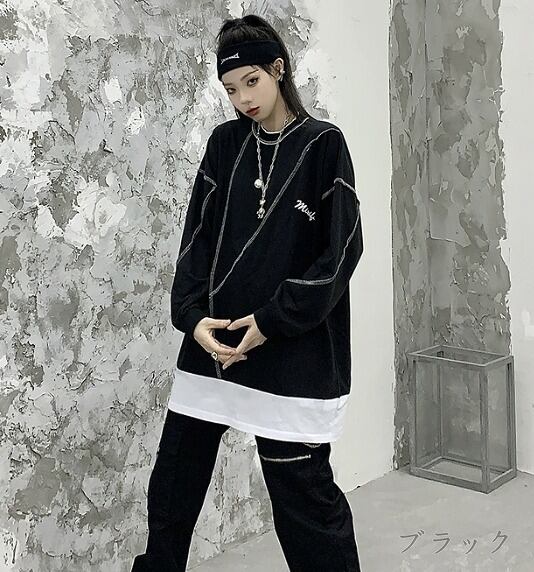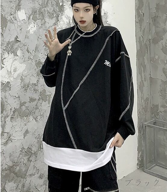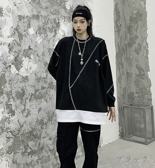 スウェット トレーナー フェイク 長袖 切り替え 体型カバー 着痩せ シンプル カジュアル