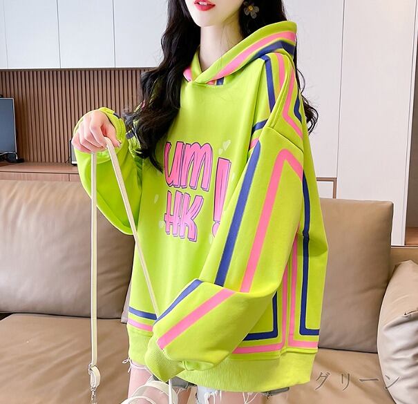 全2色 スウェット トレーナー 長袖 切り替え バイカラー 体型カバー 着痩せ 帽子付き 【大きいサイズあり】