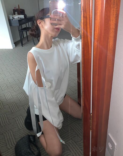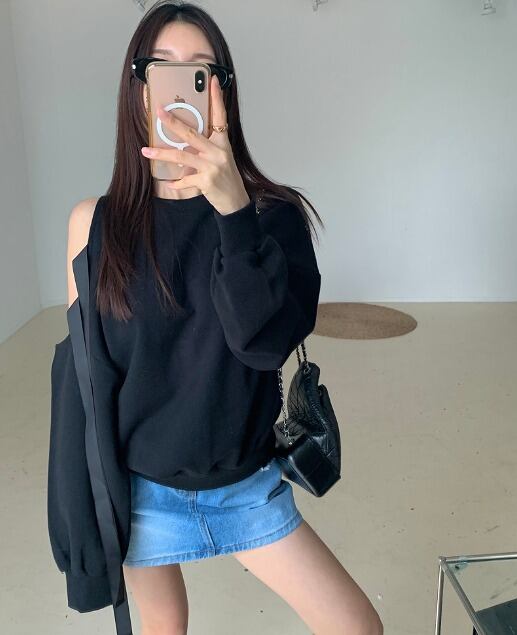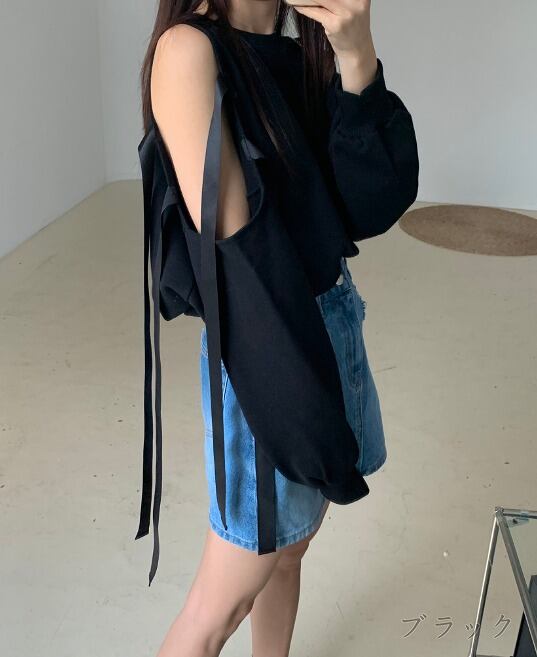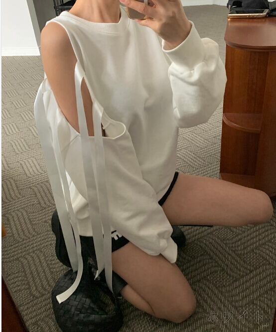 全2色 スウェット トレーナー オフショルダー 切り替え 体型カバー 着痩せ シンプル カジュアル