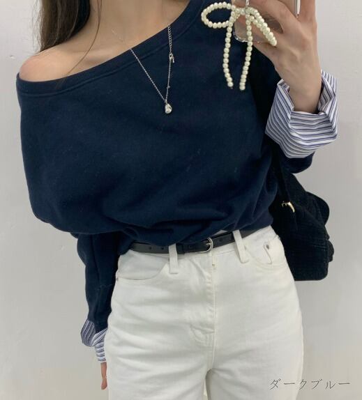 全2色 スウェット トレーナー 切り替え 体型カバー 着痩せ シンプル