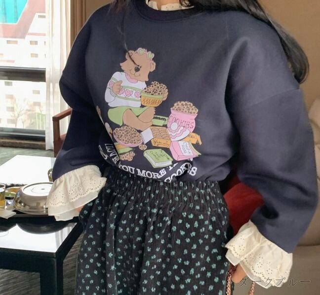 全3色 スウェット トレーナー フリル 切り替え 体型カバー 着痩せ カジュアル