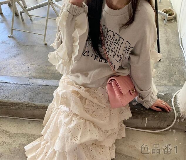 スウェット トレーナー フリル 切り替え 体型カバー 着痩せ カジュアル