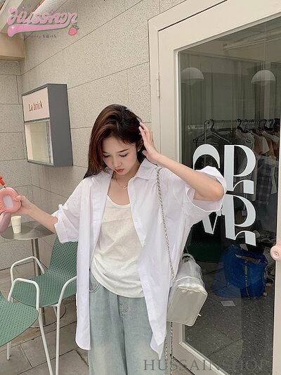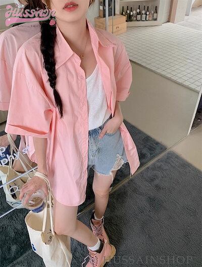 トップス レディース オーバーサイズ ビッグシルエット 半袖 シャツ 襟付き 日よけ 夏 羽織 ライトアウター 大きめ ゆったり カラバリ おしゃれ 韓国