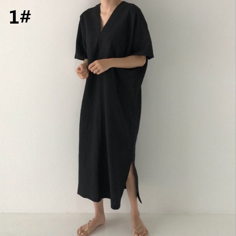 INS大人気 ワンピース レディース 麻 麻混 リネン Vネックワンピース 半袖ワンピース スリットせ