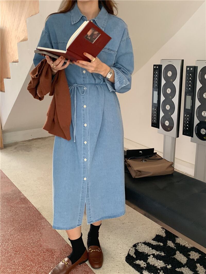 ワンピース シャツワンピース デニムワンピース 2024年秋冬新作 ロング丈ワンピース レディース 着回し