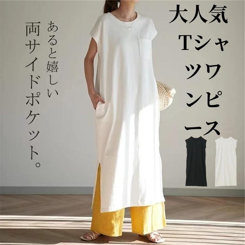 ワンピース ロング丈ワンピース tシャツワンピ 半袖 レディース ラウンドネック 気質 オシャレ