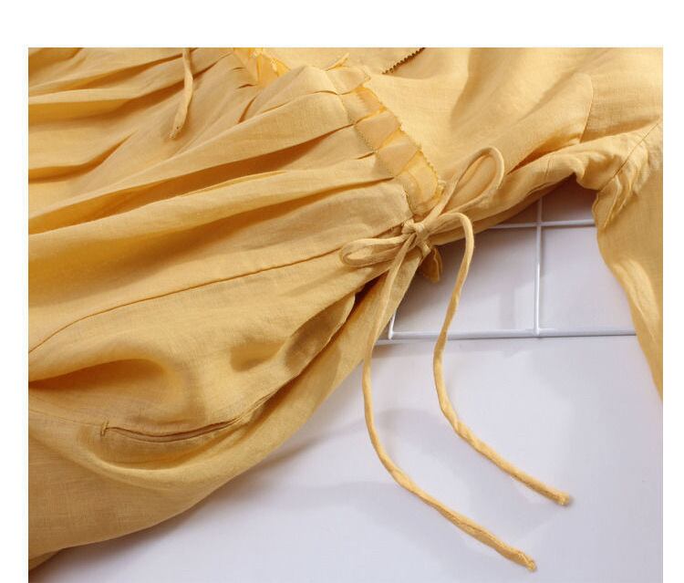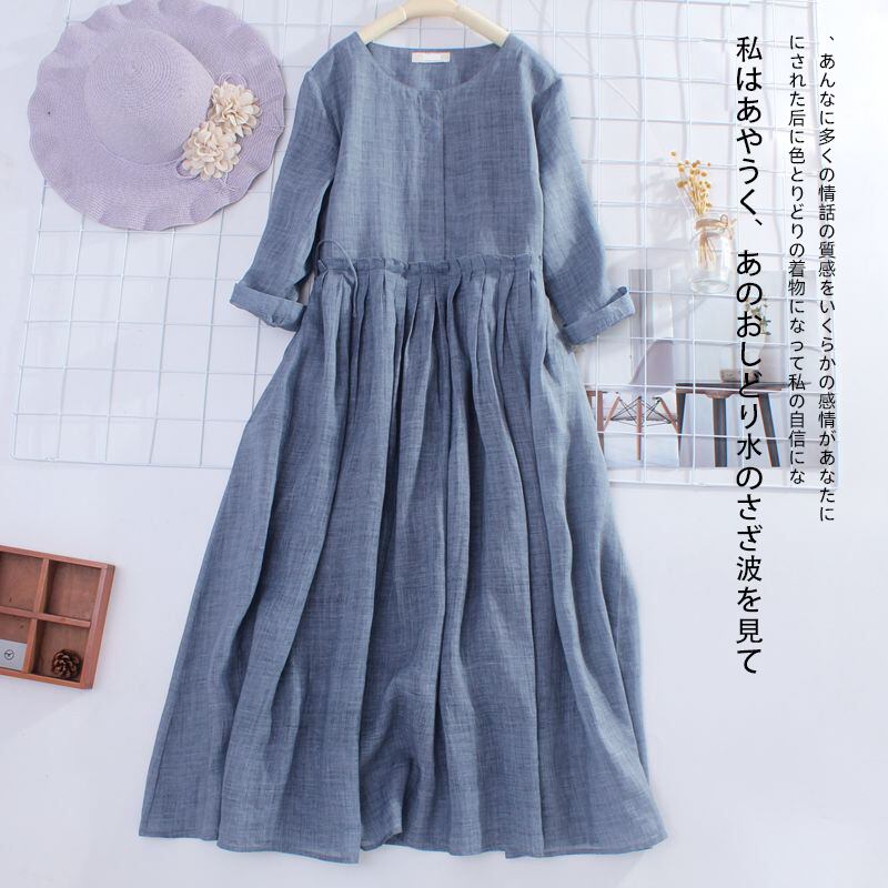 ワンピース レディース ロング丈ワンピース 半袖 ラウンドネック `リネン オシャレ 気質 2色
