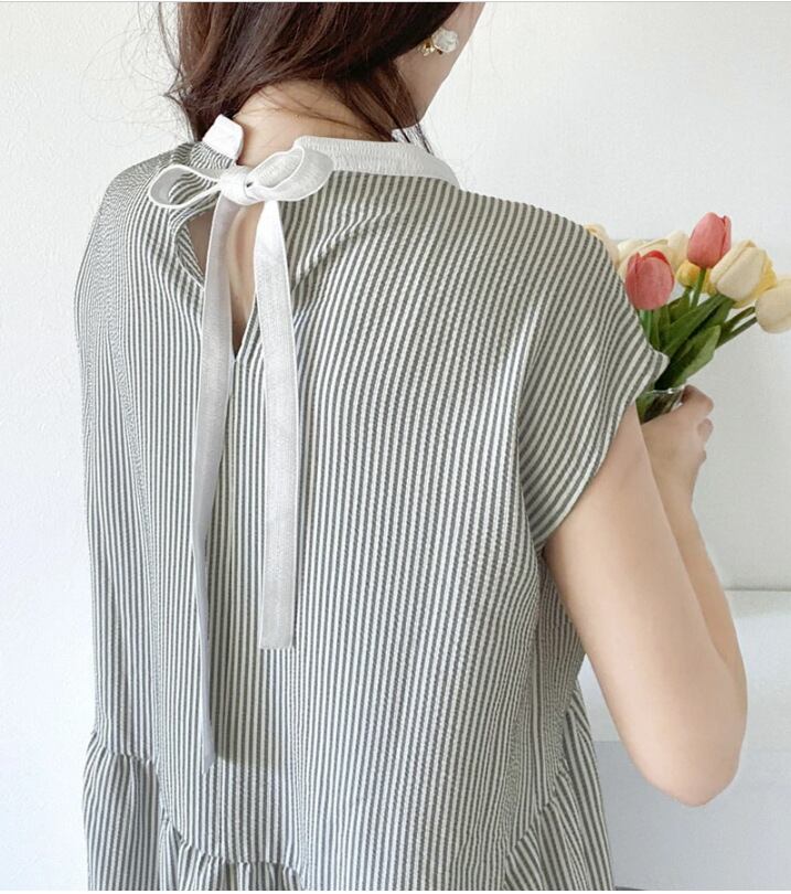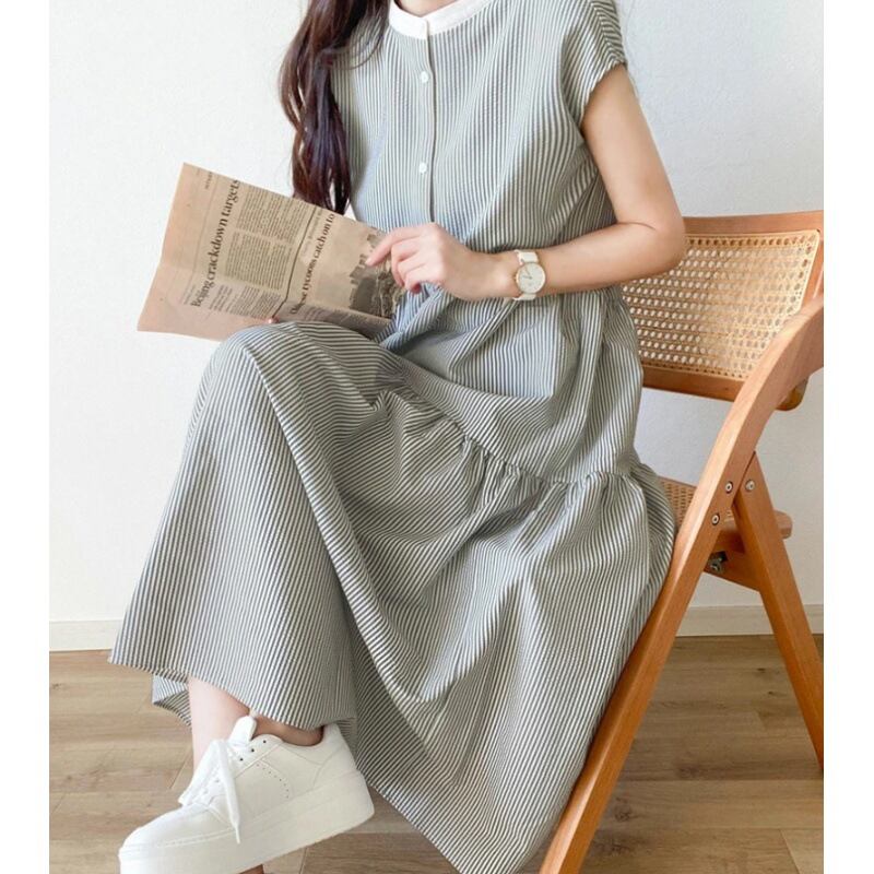 2024年夏新作 ワンピース レディース ロング丈ワンピース ノースリーブ ボーダー柄 Sweet ラウンドネック