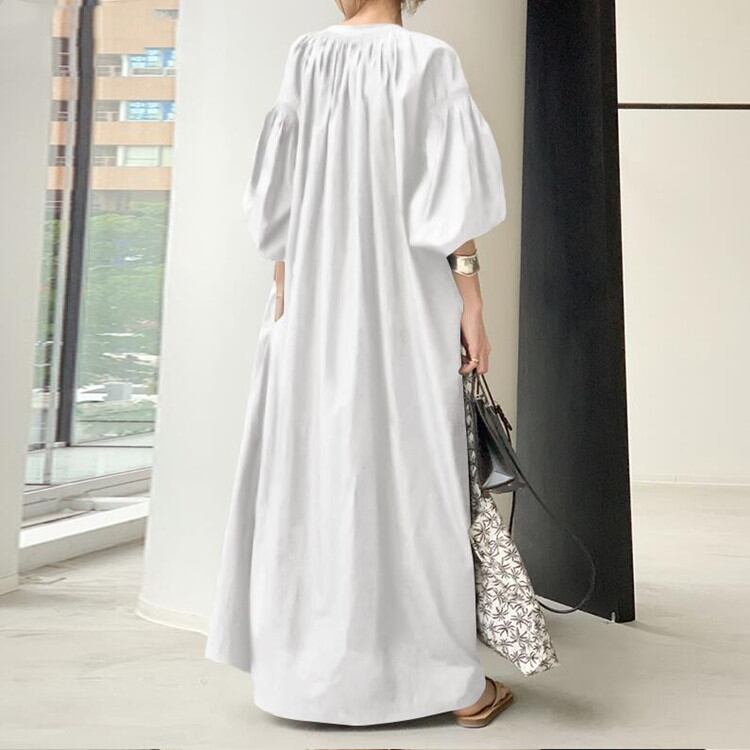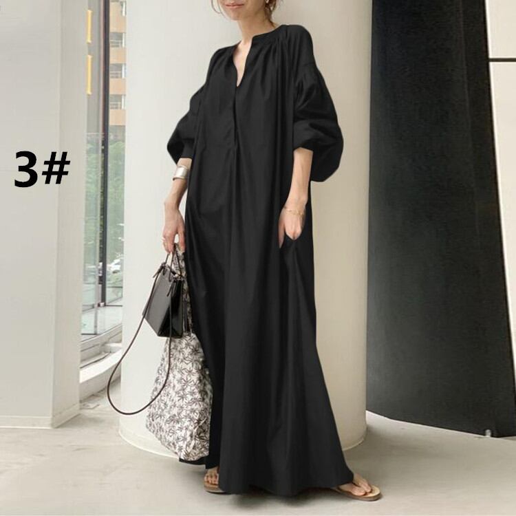 2024春夏新作 ワンピース ロング丈ワンピース レディース ランタンスリープ 刺しゅう 長袖