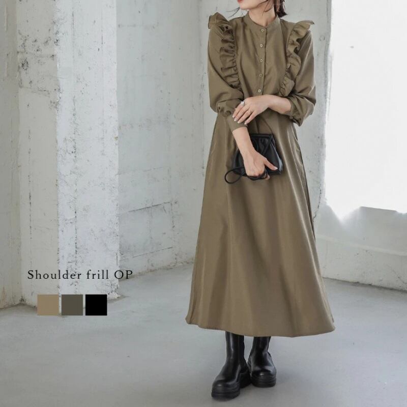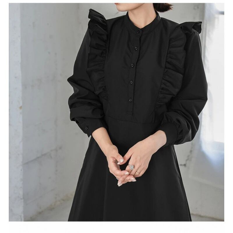 2024年秋新作 ワンピース レディース ロング丈ワンピース フリル ラウンドネック 気質 エレガント