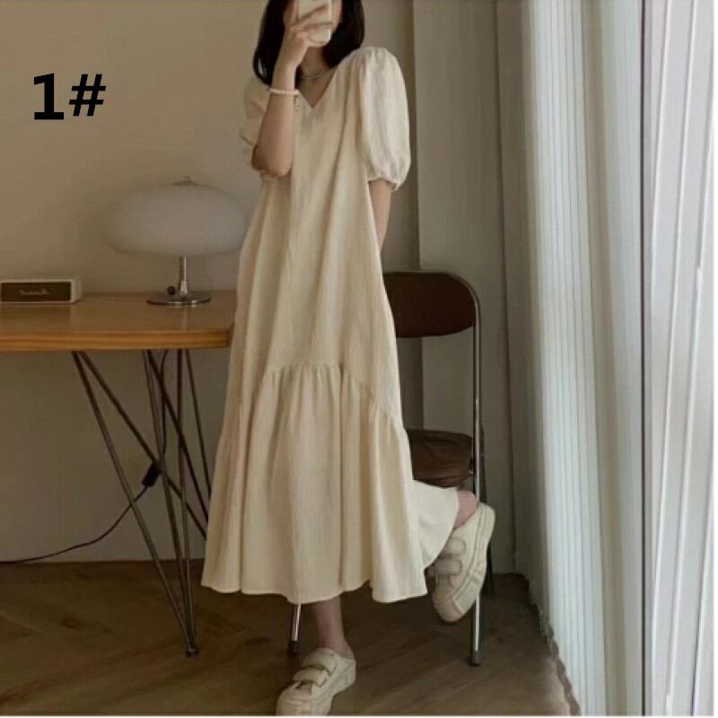 ワンピース ロング丈ワンピース レディース Vネック 半袖 気質 おしゃれ ハブスリープ 2024年夏新作