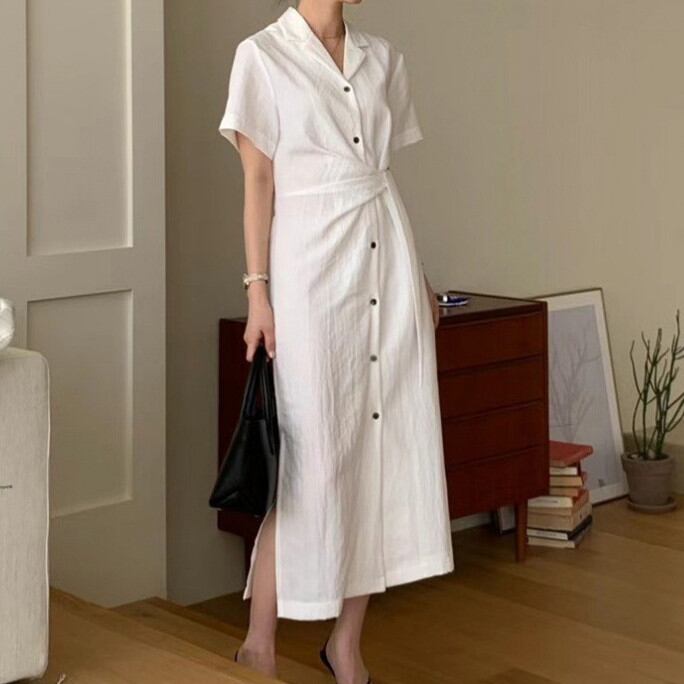2024年夏新作 ワンピース ロング丈ワンピース シャツワンピース レディース 半袖 気質 おしゃれ
