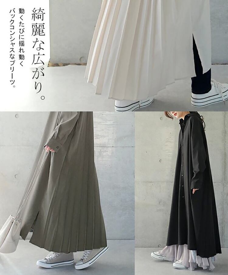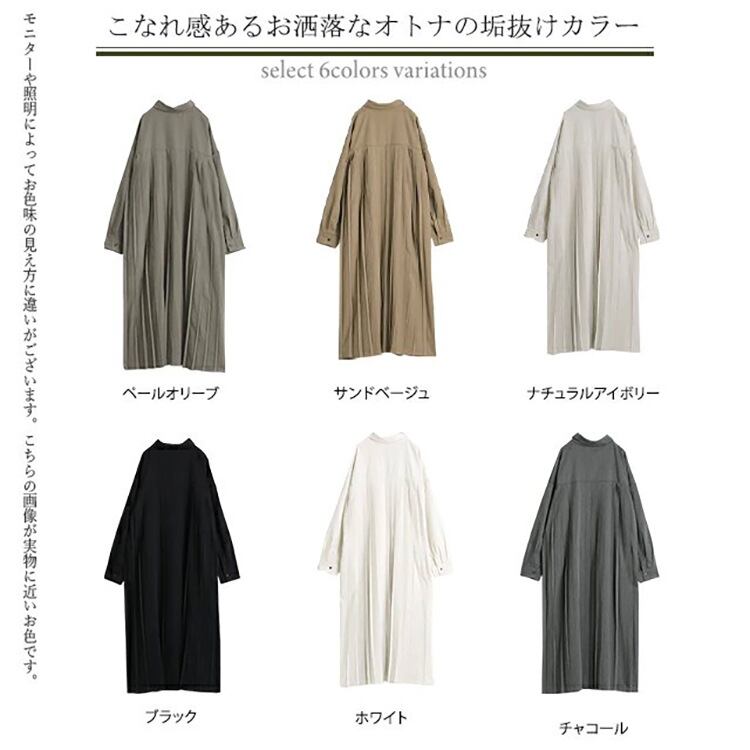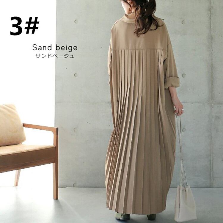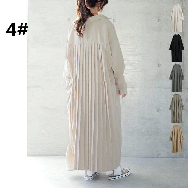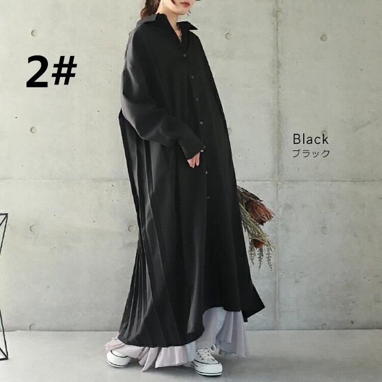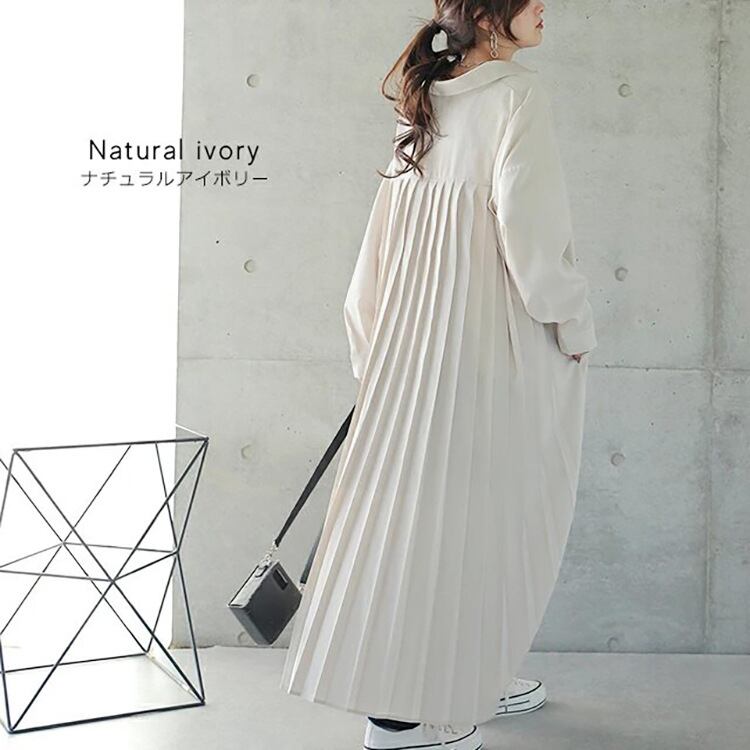 秋新作 ワンピース シャツワンピース レディース バックプリッツ ロング丈 ゆったり 体型カバー