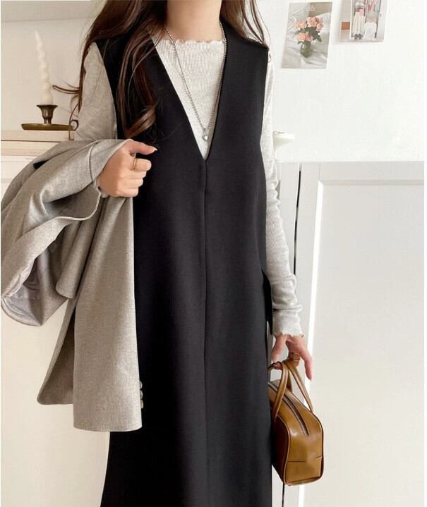 2024年新作 ワンピース ロング丈ワンピース レディース ノースリーブ ポケット付Vネックワンピース
